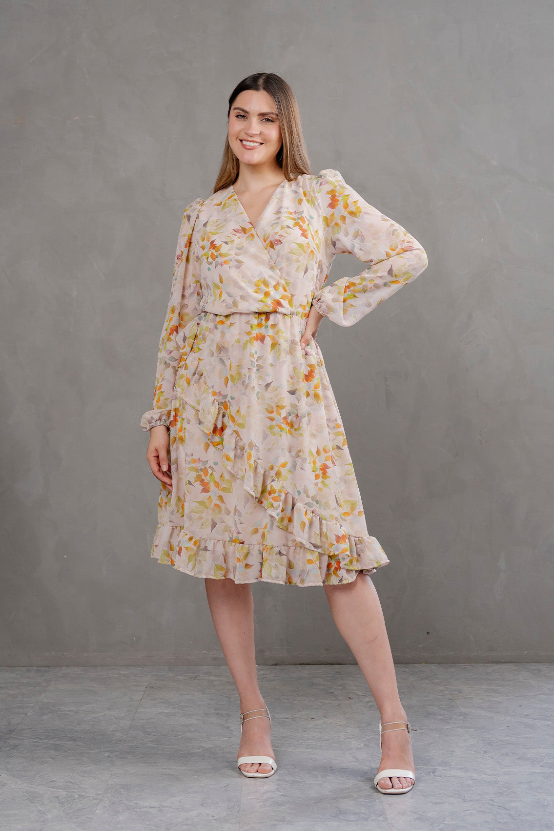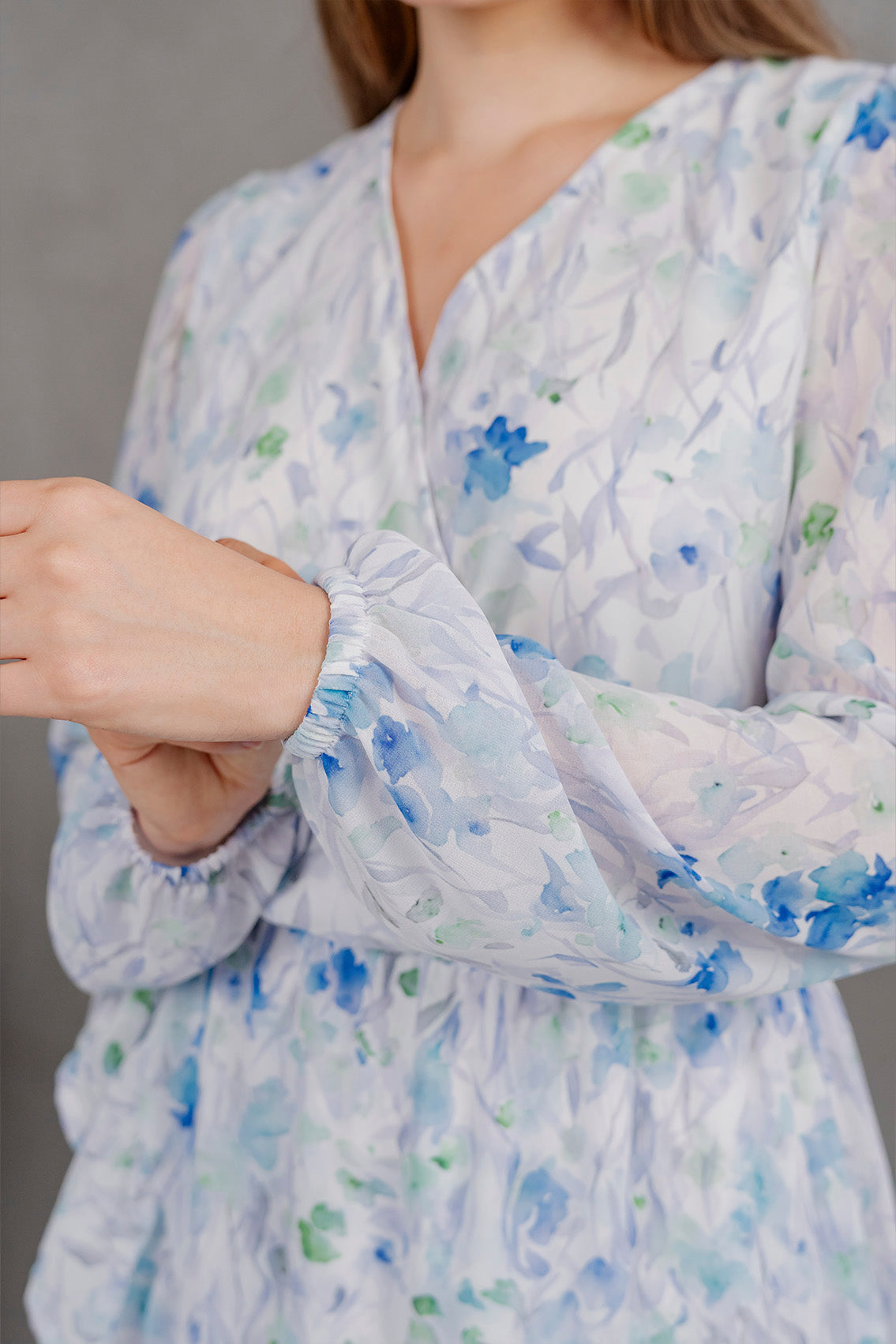 Diseño estilo tipo envolvente en gasa floral con escote en V, mangas largas semitransparentes y ruedo con volantes. Fit: Regular Fit. (Confección) 100% Peruana Tela: gasa con forro en polystrech Angelica mide 1.70 Busto 88 Cintura 67 cm Cadera 100 cm y usa la talla S/M Mileny mide 1.58 Busto 110 cm Cintura 97 cm Cadera 130 cm y usa la talla L