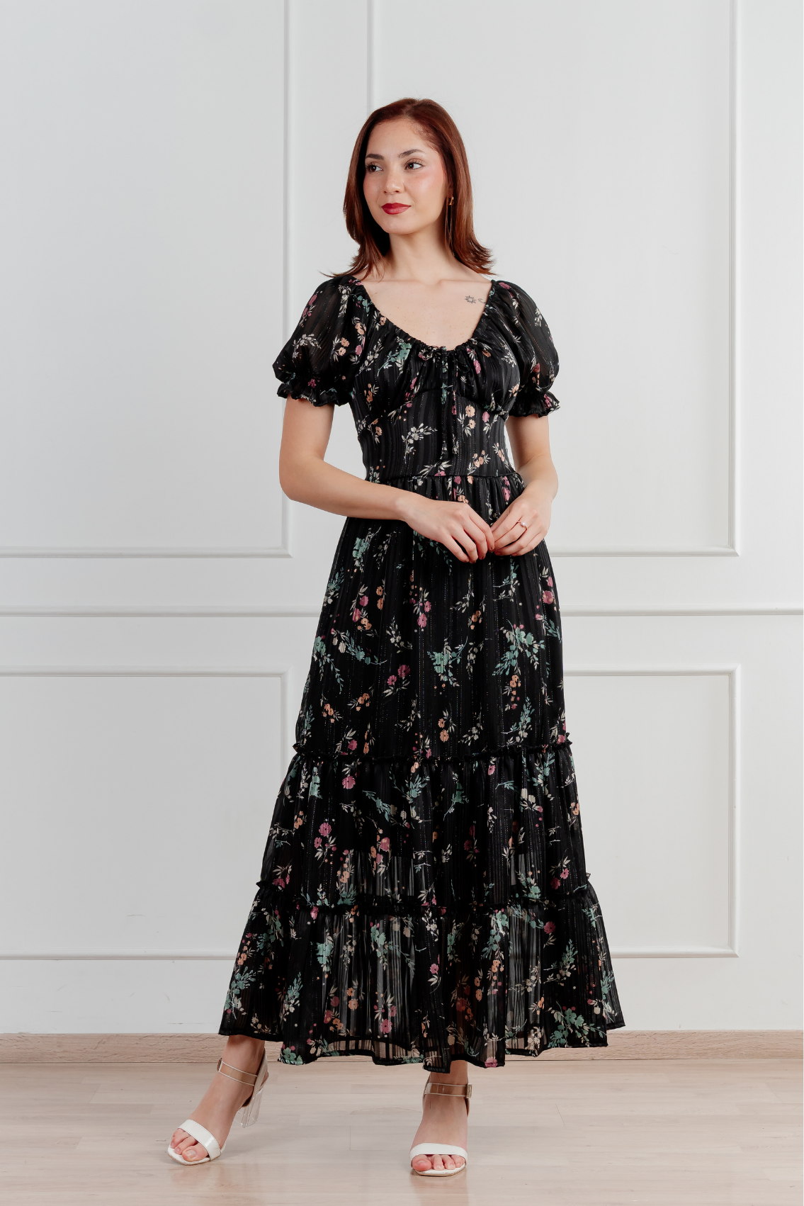 Estampado floral en tonos suaves sobre gasa con delicado forro interior, mangas abullonadas, escote redondo, espalda elasticada y lazo ajustable que acentúa la silueta con sutileza. Fit: Regular Fit. (Confección) 100% Peruana Tela: gasa lurex con forro en polystrech Referencia de tallas: Anny mide 1.74 Busto 83 Cintura 64 cm Cadera 90 cm y usa la talla S/M Mileny mide 1.58 Busto 110 cm Cintura 97 cm Cadera 130 cm y usa la talla L/XL