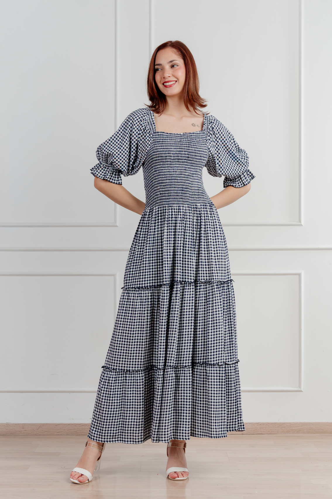 Elaborado en lino con vibrantes estampados florales, este modelo largo presenta una falda en tres capas que fluye con naturalidad. Las mangas con efecto globo incluyen elástico ajustable en los hombros, permitiendo regular su caída para un ajuste perfecto. Además, el fruncido desde el pecho hasta la cintura garantiza comodidad y una silueta favorecedora. Producción (Confección) 100% Peruana Tela lino licrado Anny mide 1.74 Busto 83 Cintura 64 cm Cadera 90 cm y usa la talla S/M Mileny mide 1.58 Busto 110 cm Cintura 98 cm Cadera 135 cm y ella usa la talla S/M