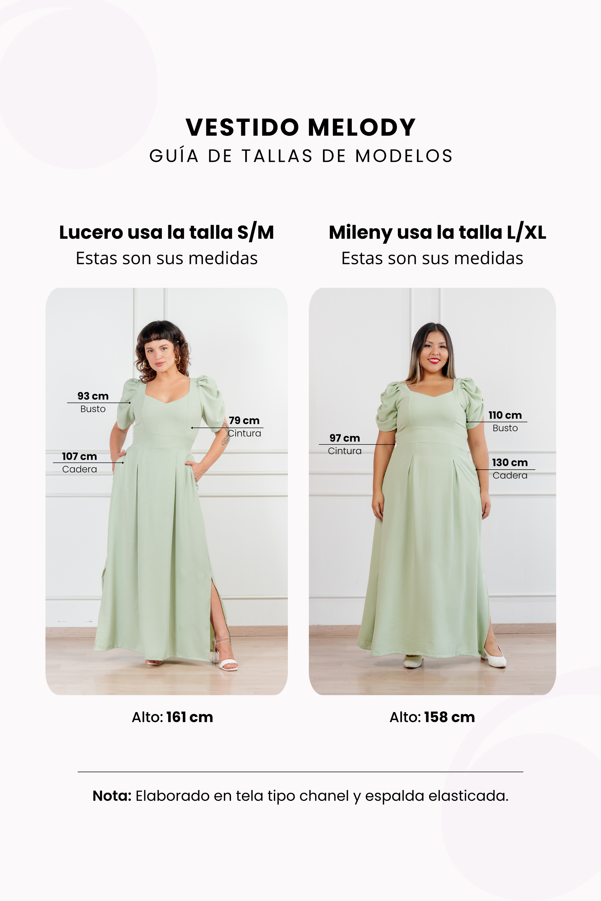 Cada producto cuenta con una tabla de medidas en formato de imagen, la cual encontrarás al final de la galería de fotos de cada producto. Además, en la descripción del producto detallamos las medidas, la altura de la modelo y la talla que utiliza, para que tengas una mejor referencia.